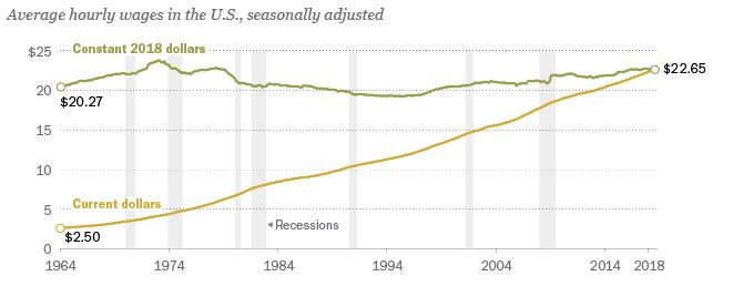 Nothing need be directly stolen from our hands, yet we are already starting to own nothing. One of many examples is housing, a very basic necessity. According to the St. Louis Fed, housing prices in the United States have multiplied 25x since 1965, far outstripping inflation. Yet Pew Research shows that the average wage has barely moved in real terms since 1965.